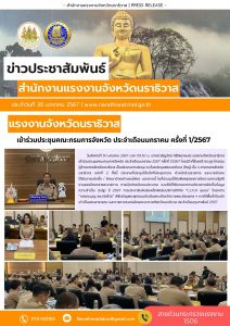 สรจ.สกลนคร ร่วมการประชุมชี้แจงแนวทางการตรวจราชการตามแผนการตรวจราชการของผู้ตรวจราชการกระทรวงแรงงาน ประจำปีงบประมาณ พ.ศ. 2567