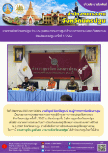 สรจ.นครปฐม ร่วมประชุมคณะกรรมการศูนย์อำนวยการความปลอดภัยทางถนนจังหวัดนครปฐม ครั้งที่ 1/2567