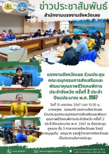 สรจ.เลย จัดประชุมหัวหน้าส่วนราชการในสังกัดกระทรวงแรงงานจังหวัดเลย และการประชุมคณะกรรมการศูนย์ปฏิบัติการป้องกันการค้ามนุษย์ด้านแรงงานจังหวัดเลย ครั้งที่ 4/2567