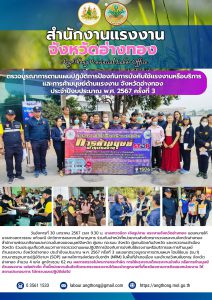 ตรวจบูรณาการตามแผนปฏิบัติการป้องกันการบังคับใช้แรงงานหรือบริการ และการค้ามนุษย์ด้านแรงงาน จังหวัดอ่างทอง ประจำปีงบประมาณ พ.ศ. 2567 ครั้งที่ 3