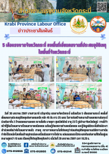 5 เสือแรงงานจังหวัดกระบี่ ลงพื้นที่เยี่ยมคนงานที่ประสบอุบัติเหตุในพื้นที่จังหวัดกระบี่