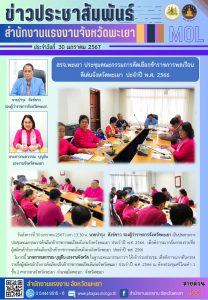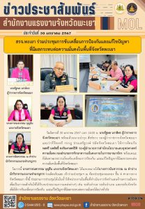 สรจ.พะเยา ร่วมประชุมการตรวจราชการตามแผนการตรวจราชการของผู้ตรวจราชการกระทรวงแรงงาน ประจำปีงบประมาณ พ.ศ. 2567