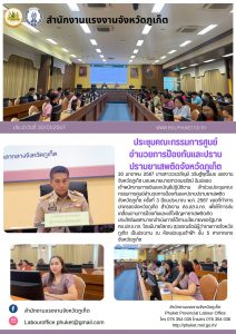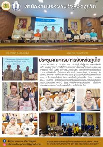 30 มกราคม 2567 เวลา 09.30 น. นางสาววรวลัญช์ วริษฐ์พุฒิเมธ แรงงานจังหวัดภูเก็ต และหัวหน้าส่วนราชการสังกัดกระทรวงแรงงานจังหวัดภูเก็ต ร่วมประชุมคณะกรมการจังหวัด ครั้งที่ 1/2567 ประจำเดือนมกราคม 2567