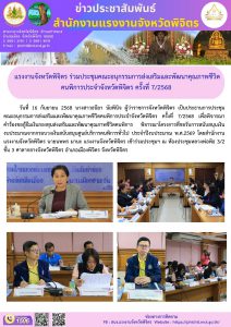 แรงงานจังหวัดพิจิตร ร่วมประชุมคณะอนุกรรมการส่งเสริมและพัฒนาคุณภาพชีวิต คนพิการประจำจังหวัดพิจิตร ครั้งที่ 7/2568