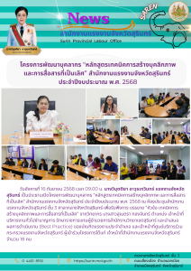 แรงงานจังหวัดสุรินทร์ จัดโครงการพัฒนาบุคลากร “หลักสูตรเทคนิคการสร้างบุคลิกภาพ และการสื่อสารที่เป็นเลิศ” สำนักงานแรงงานจังหวัดสุรินทร์ ประจำปีงบประมาณ พ.ศ. 2568