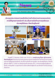 แรงงานจังหวัดสุรินทร์ ประชุมคณะกรรมการผลักดันการดำเนินงานตามแผนแม่บทภายใต้ยุทธศาสตร์ชาติ ประเด็นการต่อต้านการทุจริตและประพฤติมิชอบ จังหวัดสุรินทร์