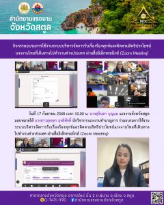 แรงงานสตูล เข้าร่วมอบรมการใช้งานระบบบริหารจัดการรับเรื่องร้องทุกข์และติดตามสิทธิประโยชน์แรงงานไทยที่เดินทางไปทำงานต่างประเทศ ผ่านสื่ออิเล็กทรอนิกส์ (Zoom Meeting)