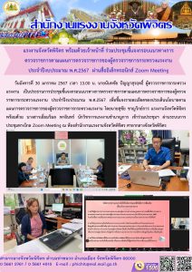 สรจ.พิจิตร ร่วมประชุมชี้แจงกรอบแนวทางการตรวจราชการตามแผนการตรวจราชการของผู้ตรวจราชการกระทรวงแรงงาน ประจำปีงบประมาณ พ.ศ.2567 ผ่านสื่ออิเล็กทรอนิกส์ Zoom Meeting
