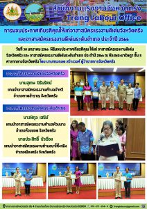 สรจ.ตรัง มอบประกาศเกียรติคุณให้แก่อาสาสมัครแรงงานดีเด่นจังหวัดตรังและอาสาสมัครแรงงานดีเด่นระดับอำเภอ ประจำปี 2566