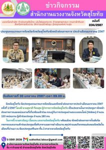 สรจ.อุตรดิตถ์ ร่วมประชุมรับฟังการชี้แจงแนวทางการตรวจราชการตามแผนการตรวจราชการของผู้ตรวจราชการกระทรวงแรงงาน ประจำปีงบประมาณ พ.ศ.2567 รอบที่ 1 (Project Review)