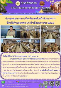 สรจ.กำแพงเพชร เข้าร่วมการประชุมคณะกรมการจังหวัดและหัวหน้าส่วนราชการ จังหวัดกำแพงเพชร ประจำเดือนมกราคม 2567