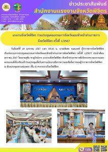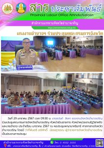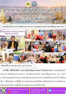 สรจ.อุบลฯ ประชุมหัวหน้าส่วนราชการสังกัดกระทรวงแรงงาน จังหวัดอุบลราชธานี ประจำเดือนมกราคม 2567