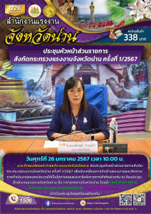 สรจ.น่าน จัดประชุมหัวหน้าส่วนราชการสังกัดกระทรวงแรงงานจังหวัดน่าน ครั้งที่ 1/2567