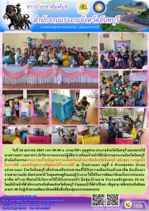 สรจ.จันทบุรี จัดกิจกรรมโครงการแก้ไขปัญหาความเดือดร้อนด้านอาชีพจังหวัดจันทบุรี หลักสูตร การผูกผ้าในงานพิธี และหลักสูตรการจัดดอกไม้ในงานพิธี ณ บ้านหางแมว หมู่ที่ 4 ตำบลขุนซ่อง อำเภอ แก่งหางแมว จังหวัดจันทบุรี