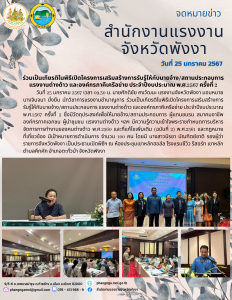 สรจ.พังงา ร่วมเป็นเกียรติในพิธีเปิดโครงการเสริมสร้างการรับรู้ให้กับนายจ้าง/สถานประกอบการ แรงงานต่างด้าว และองค์กรภาคีเครือข่าย ประจำปีงบประมาณ พ.ศ.2567 ครั้งที่ 2