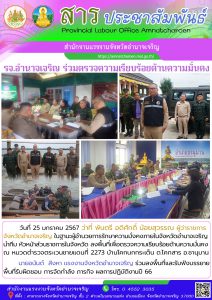 สรจ.ลพบุรี การบูรณาการตรวจสถานประกอบการกลุ่มเสี่ยงภายใต้แผนปฏิบัติการป้องกันการบังคับใช้แรงงานหรือบริการ และการค้ามนุษย์ด้านแรงงานจังหวัดลพบุรี ประจำปีงบประมาณ พ.ศ. 2567