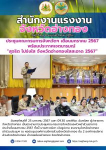 สรจ.พระนครศรีอยุธยา จัดประชุมโครงการอาสาสมัครแรงงานต้านภัยยาเสพติดและประสานการให้บริการด้านแรงงานในพื้นที่โดยอาสาสมัครแรงงาน จังหวัดพระนครศรีอยุธยา ประจำปีงบประมาณ พ.ศ. 2567