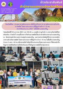 สรจ.พิจิตร ประชุมอาสาสมัครแรงงาน เพื่อชี้แจงโครงการอาสาสมัครแรงงานต้านภัย ยาเสพติด ในสถานประกอบการที่มีลูกจ้างต่ำกว่า 10 คน ประจำปีงบประมาณ 2567 ในพื้นที่อำเภอดงเจริญ