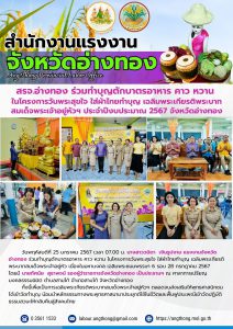 สรจ.อ่างทอง ร่วมทำบุญตักบาตรอาหาร คาว หวาน ในโครงการวันพระสุขใจ ใส่ผ้าไทยทำบุญ เฉลิมพระเกียรติพระบาทสมเด็จพระเจ้าอยู่หัวฯ ประจำปีงบประมาณ 2567 จังหวัดอ่างทอง