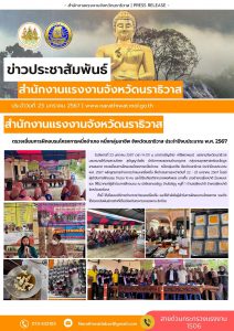 สรจ.นราธิวาส ตรวจเยี่ยมการฝึกอบรมโครงการเสริมสร้างความเข้มแข็งและสุขภาวะในการทำงานแก่แรงงานนอกระบบ (รวมแรงงานคนพิการและแรงงานสูงอายุ) ประจำปีงบประมาณ พ.ศ. 2567