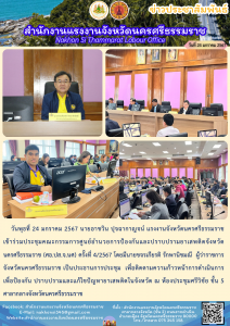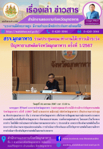 สรจ.มุกดาหาร ประชุมคณะทำงานตรวจติดตามสถานประกอบกิจการเพื่อป้องกันการบังคับใช้แรงงานหรือบริการและการค้ามนุษย์ด้านแรงงานจังหวัดมุกดาหาร