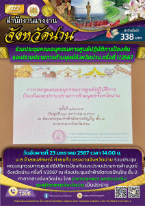 สรจ.นครศรีธรรมราช ได้ดำเนินการจัดประชุมขับเคลื่อนงานอาสาสมัครแรงงานจังหวัดนครศรีธรรมราช ประจำเดือนมกราคม 2567 เพื่อขับเคลื่อนการปฏิบัติงานด้านแรงงาน สู่พื้นที่ชุมชน และติดตามผลการดำเนินงานของอาสาสมัครแรงงาน
