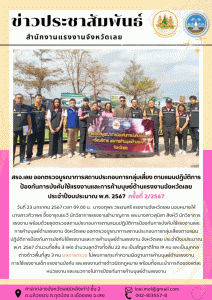 สรจ.เลย ออกตรวจบูรณาการสถานประกอบการกลุ่มเสี่ยง ตามแผนปฏิบัติการป้องกันการบังคับใช้แรงงานและการค้ามนุษย์ด้านแรงงานจังหวัดเลย ประจำปีงบประมาณ พ.ศ. 2567 ครั้งที่ 2/2567