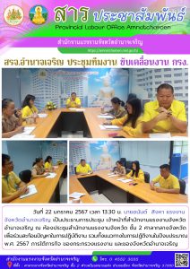 สรจ.อำนาจเจริญ ประชุมทีมงาน ขับเคลื่อนนโยบายกระทรวงแรงงาน และนโยบายจังหวัด
