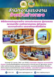 สรจ.อ่างทอง พิธีเปิดการประชุมนายจ้าง สถานประกอบการ ผู้แทนชมรม สมาคมอาชีพ องค์กรภาคเอกชน ผู้นำชุมชน แรงงานต่างด้าว และองค์กรภาคีเครือข่าย