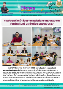 สรจ.สุรินทร์ ประชุมหัวหน้าส่วนราชการสังกัดกระทรวงแรงงานจังหวัดสุรินทร์ ประจำเดือน มกราคม 2567