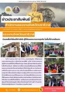 สร้างวัฒนธรรมความปลอดภัย เศรษฐกิจแรงงานไทยมั่นคง"