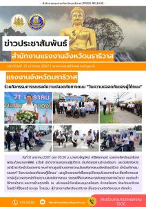 สรจ.นราธิวาส ร่วมกิจกรรมการรณรงค์ความปลอดภัยทางถนน “วันความปลอดภัยของผู้ใช้ถนน”