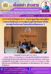 สรจ.มุกดาหาร ดำเนินการประชุมมอบนโยบายการปฏิบัติงานอาสาสมัครแรงงานจังหวัดมุกดาหาร ประจำเดือนมกราคม 2567