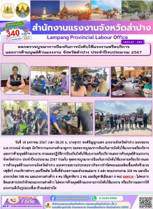 สรจ.ลำปาง ออกตรวจบูรณาการป้องกันการบังคับใช้แรงงานหรือบริการและการค้ามนุษย์ด้านแรงงานจังหวัดลำปาง ประจำปีงบประมาณ 2567