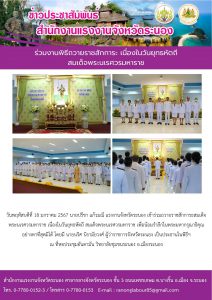สรจ.สกลนคร ร่วมพิธีสวดพระพุทธมนต์และพิธีทำบุญตักบาตรถวายพระราชกุศล และพิธีวางพุ่มดอกไม้และถวายราชสดุดี เนื่องในวันยุทธหัตถีสมเด็จพระนเรศวรมหาราช ประจำปีพุทธศักราช 2567