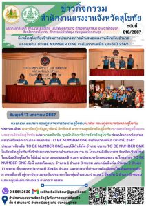 สรจ.สุโขทัย นำเสนอผลการดำเนินงานโครงการ TO BE NUMBER ONE ประเภทชมรม TO BE NUMBER OBE ในสถานประกอบการ ระดับภาคเหนือ ประจำปี 2567