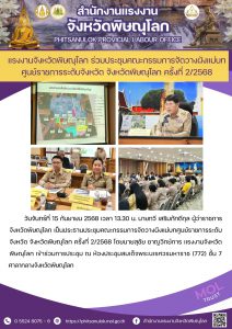 แรงงานจังหวัดพิษณุโลก ร่วมประชุมคณะกรรมการจัดวางผังแม่บทศูนย์ราชการระดับจังหวัด จังหวัดพิษณุโลก ครั้งที่ 2/2568