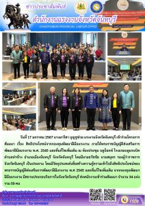 สรจ.จันทบุรี เข้าร่วมโครงการสัมมนา เรื่อง สิทธิประโยชน์จากกองทุนพัฒนาฝีมือแรงงาน ภายใต้พระราชบัญญัติส่งเสริมการพัฒนาฝีมือแรงงาน พ.ศ. 2545 และที่แก้ไขเพิ่มเติม