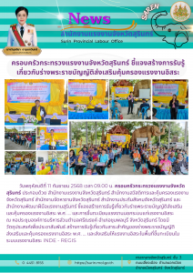 ครอบครัวกระทรวงแรงงานจังหวัดสุรินทร์ ชี้แจงสร้างการรับรู้เกี่ยวกับร่างพระราชบัญญัติส่งเสริมคุ้มครองแรงงานอิสระ