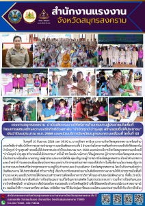 แรงงานสมุทรสงคราม นำบัณฑิตแรงงานให้บริการด้านแรงงานสู่ประชาชนในพื้นที่ โครงการเสริมสร้างความจงรักภักดีต่อสถาบัน “บำบัดทุกข์ บำรุงสุข สร้างรอยยิ้มให้ประชาชน” ประจำปีงบประมาณ พ.ศ. 2568 และหน่วยบริการจังหวัดสมุทรสงครามเคลื่อนที่ (ครั้งที่ 10)