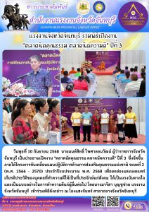 แรงงานจังหวัดจันทบุรี เข้าร่วมงาน”ตลาดนัดคุณธรรม ตลาดนัดความดี” ปีที่ 3