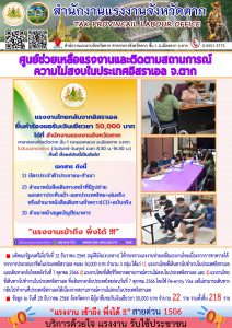 สรจ.พิจิตร ให้บริการรับคำร้องขอรับเงินเยียวยาแรงงานที่ได้รับผลกระทบจากสถานการณ์ความไม่สงบในประเทศอิสราเอล