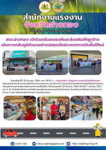 สรจ.อ่างทอง เข้าร่วมเดินรณรงค์และส่งเสริมให้ลูกจ้าง เดินทางกลับภูมิลำเนาอย่างปลอดภัยช่วงเทศกาลวันขึ้นปีใหม่