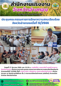 สรจ.ตาก เข้าร่วมประชุมคณะกรรมการการรักษาความสงบเรียบร้อย จังหวัดอ่างทองครั้งที่ 12/2566