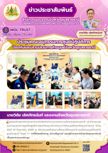 แรงงานจังหวัดอุบลราชธานี เข้าร่วมประชุมคณะอนุกรรมการศูนย์ปฏิบัติการป้องกันและปราบปรามการค้ามนุษย์จังหวัดอุบลราชธานี