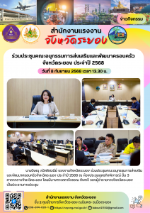 แรงงานจังหวัดระยอง ร่วมประชุมคณะอนุกรรมการส่งเสริมและพัฒนาครอบครัวจังหวัดระยอง ประจำปี 2568