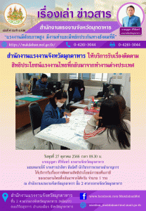 สรจ.มุกดาหาร ให้บริการรับเรื่องติดตามสิทธิประโยชน์แรงงานไทยที่กลับมาจากทำงานต่างประเทศ