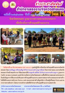 สรจ.สกลนคร บูรณาการตรวจสถานประกอบการ เพื่อป้องกันการค้ามนุษย์ด้านแรงงาน
