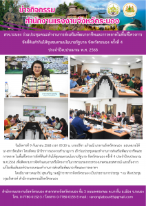 สรจ.ระนอง ร่วมประชุมคณะทำงานการส่งเสริมพัฒนาอาชีพและการตลาดในพื้นที่โครงการ จัดที่ดินทำกินให้ชุมชนตามนโยบายรัฐบาล จังหวัดระนอง ครั้งที่ 4 ประจำปีงบประมาณ พ.ศ. 2568