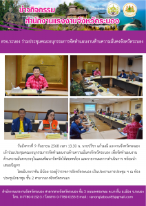 แรงงานจังหวัดมุกดาหาร ร่วมประชุมคณะทำงานพิจารณากำหนดพื้นที่หรือบริเวณที่เป็นแหล่งท่องเที่ยวจังหวัดมุกดาหาร